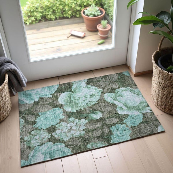 Mayfield Premium Machine Washable Abstract AMF1561 Seafoam 2 ft. x 3 ft. Area Rug