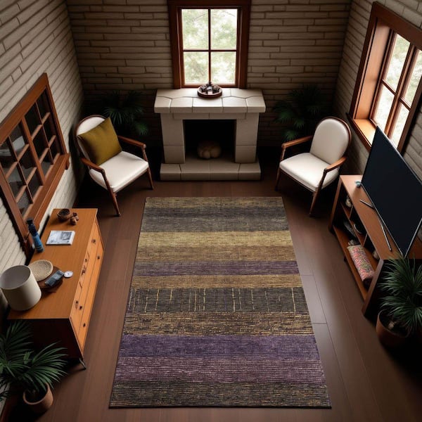 Mayfield Premium Machine Washable Abstract AMF1568 Brown 9 ft. x 12 ft. Area Rug