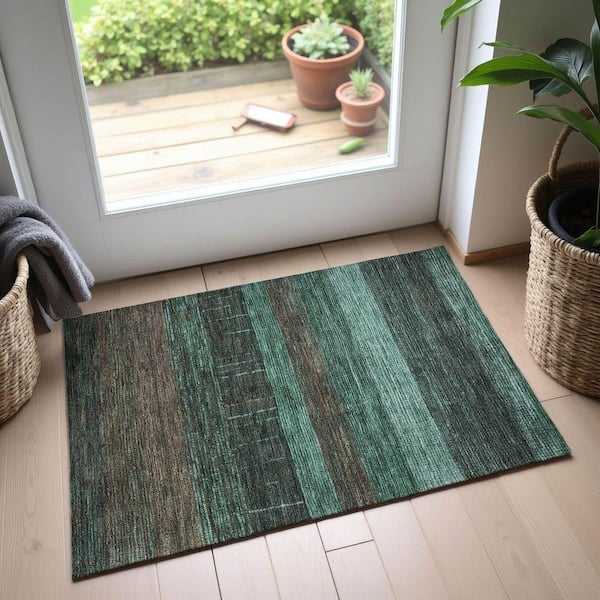 Mayfield Premium Machine Washable Abstract AMF1568 Teal 2 ft. x 3 ft. Area Rug