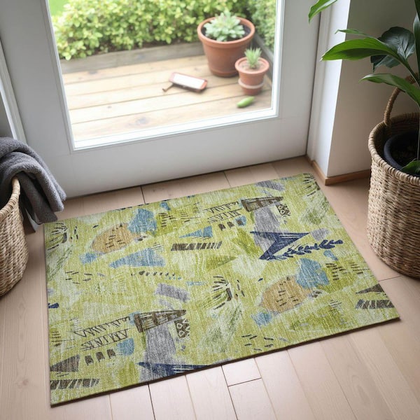 Mayfield Premium Machine Washable Abstract AMF1573 Aloe 2 ft. x 3 ft. Area Rug