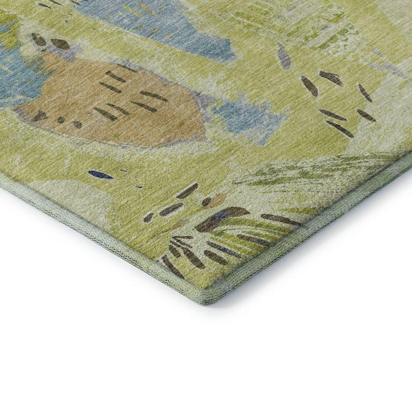 Mayfield Premium Machine Washable Abstract AMF1573 Aloe 5 ft. x 7 ft. 6 in. Area Rug