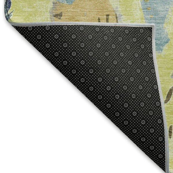 Mayfield Premium Machine Washable Abstract AMF1573 Aloe 8 ft. x 8 ft. Round Rug