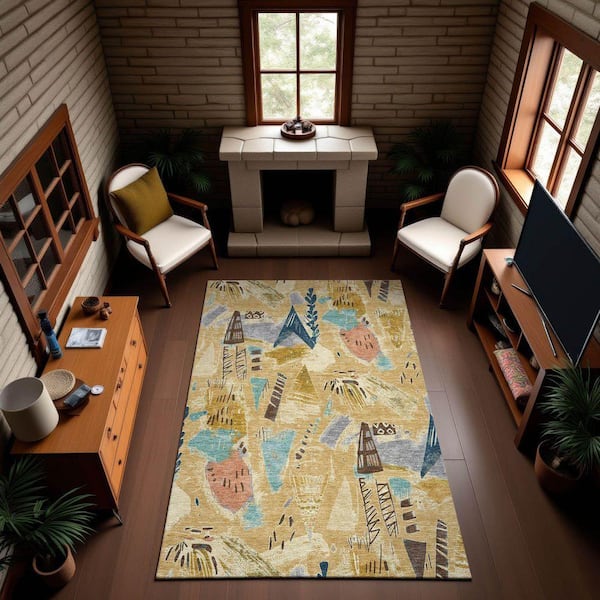 Mayfield Premium Machine Washable Abstract AMF1573 Gold 10 ft. x 14 ft. Area Rug