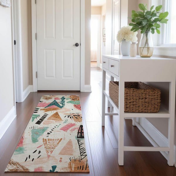 Mayfield Premium Machine Washable Abstract AMF1573 Ivory 2 ft. 3 in. x 7 ft. 6 in. Runner Rug