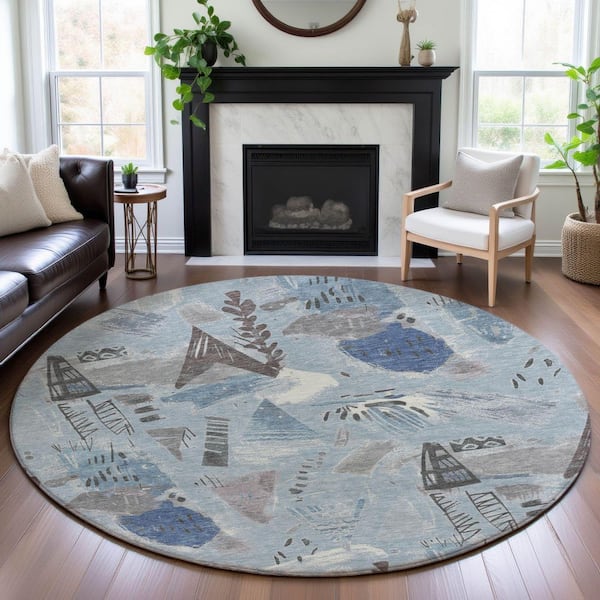 Mayfield Premium Machine Washable Abstract AMF1573 Sky 8 ft. x 8 ft. Round Rug