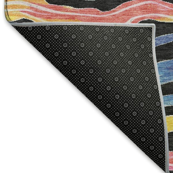 Mayfield Premium Machine Washable Abstract AMF1581 Black 8 ft. x 8 ft. Round Rug