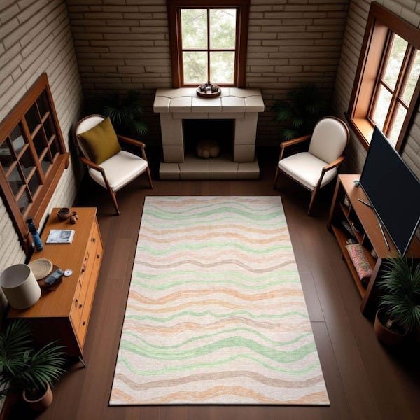 Mayfield Premium Machine Washable Abstract AMF1581 Peach 8 ft. x 10 ft. Area Rug