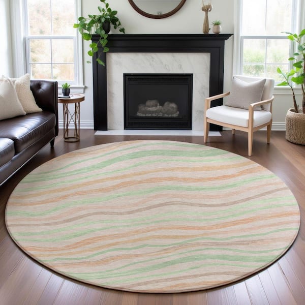 Mayfield Premium Machine Washable Abstract AMF1581 Peach 8 ft. x 8 ft. Round Rug