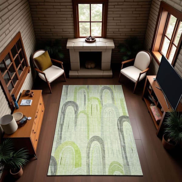 Mayfield Premium Machine Washable Abstract AMF1588 Aloe 8 ft. x 10 ft. Area Rug