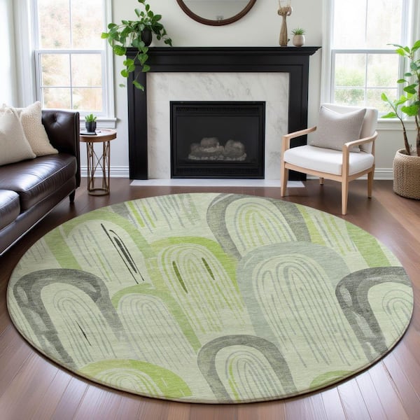Mayfield Premium Machine Washable Abstract AMF1588 Aloe 8 ft. x 8 ft. Round Rug
