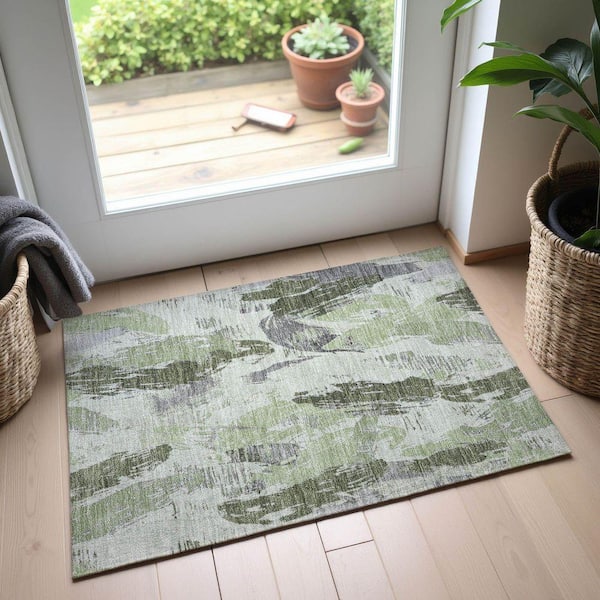 Mayfield Premium Machine Washable Abstract AMF1596 Aloe 2 ft. x 3 ft. Area Rug