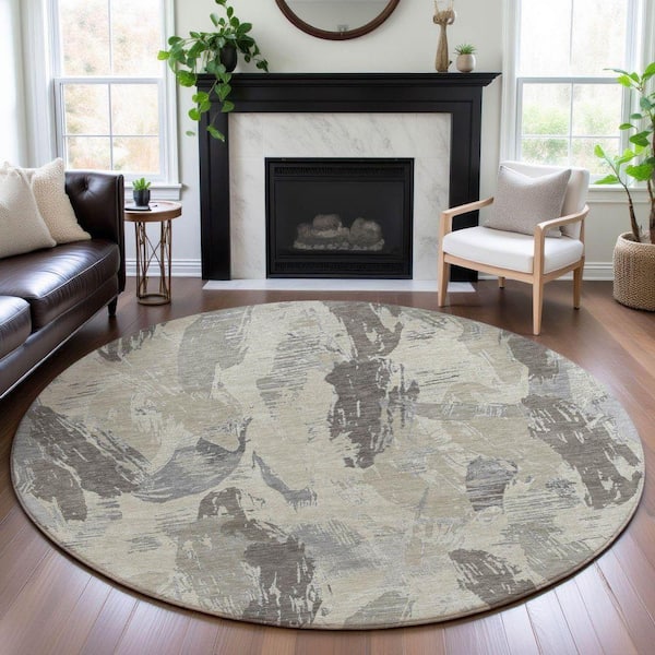 Mayfield Premium Machine Washable Abstract AMF1596 Taupe 8 ft. x 8 ft. Round Rug
