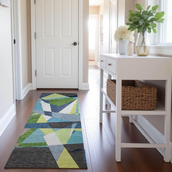 Mayfield Premium Machine Washable Abstract AMF1609 Blue 2 ft. 3 in. x 7 ft. 6 in. Runner Rug