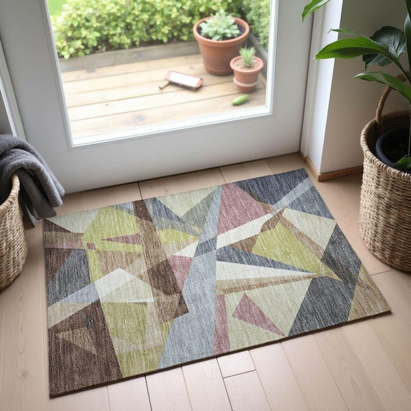 Mayfield Premium Machine Washable Abstract AMF1609 Khaki 2 ft. x 3 ft. Area Rug