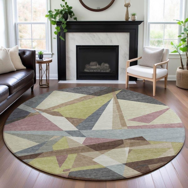 Mayfield Premium Machine Washable Abstract AMF1609 Khaki 8 ft. x 8 ft. Round Rug