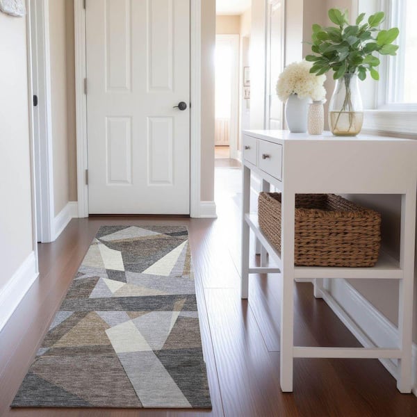 Mayfield Premium Machine Washable Abstract AMF1609 Taupe 2 ft. 3 in. x 7 ft. 6 in. Runner Rug