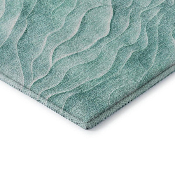 Mayfield Premium Machine Washable Abstract AMF1614 Aqua 10 ft. x 14 ft. Area Rug