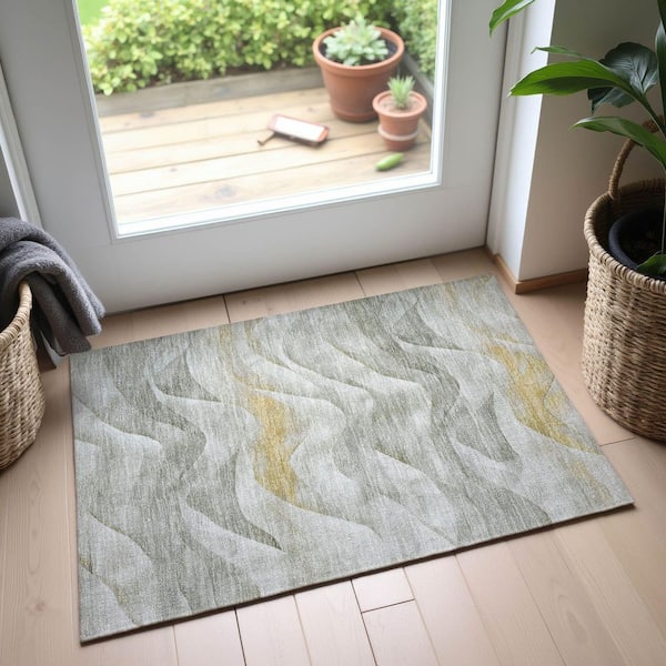 Mayfield Premium Machine Washable Abstract AMF1619 Silver 2 ft. x 3 ft. Area Rug