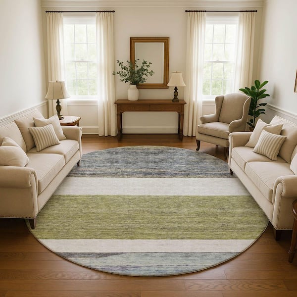 Mayfield Premium Machine Washable Abstract AMF1624 Aloe 8 ft. x 8 ft. Round Rug