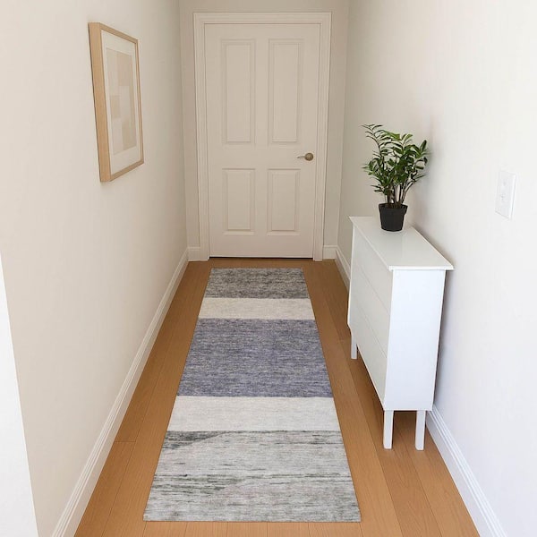 Mayfield Premium Machine Washable Abstract AMF1624 Denim 2 ft. 3 in. x 7 ft. 6 in. Runner Rug