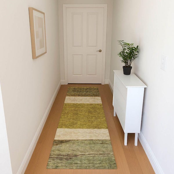 Mayfield Premium Machine Washable Abstract AMF1624 Gold 2 ft. 3 in. x 7 ft. 6 in. Runner Rug