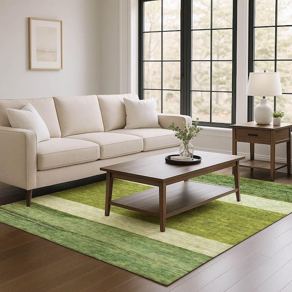 Mayfield Premium Machine Washable Abstract AMF1624 Olive 3 ft. x 5 ft. Area Rug