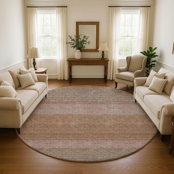 Mayfield Premium Machine Washable Abstract AMF1624 Salmon 8 ft. x 8 ft. Round Rug