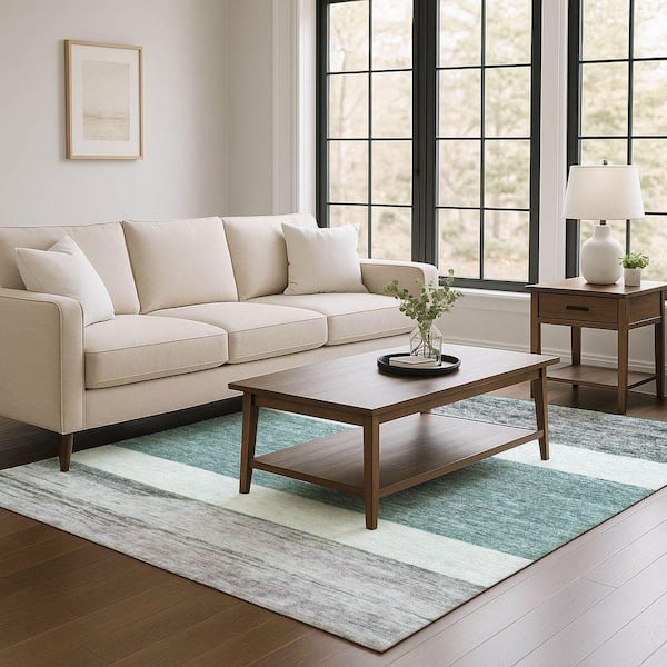 Mayfield Premium Machine Washable Abstract AMF1624 Teal 8 ft. x 10 ft. Area Rug