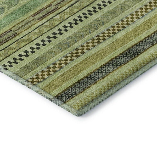 Mayfield Premium Machine Washable Abstract AMF1625 Aloe 3 ft. x 5 ft. Area Rug