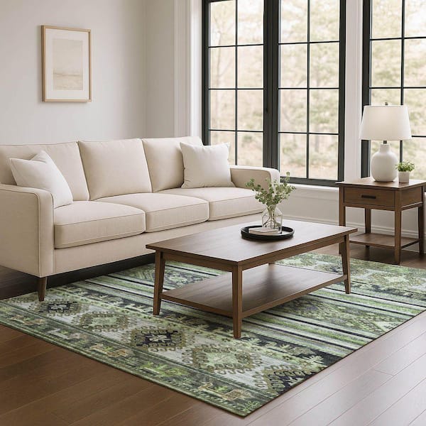 Mayfield Premium Machine Washable Abstract AMF1626 Fern 9 ft. x 12 ft. Area Rug