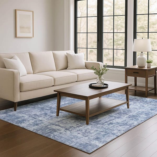 Mayfield Premium Machine Washable Abstract AMF1627 Blue 3 ft. x 5 ft. Area Rug