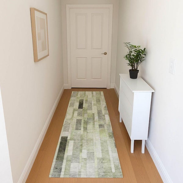 Mayfield Premium Machine Washable Abstract AMF1630 Green 2 ft. 3 in. x 7 ft. 6 in. Runner Rug