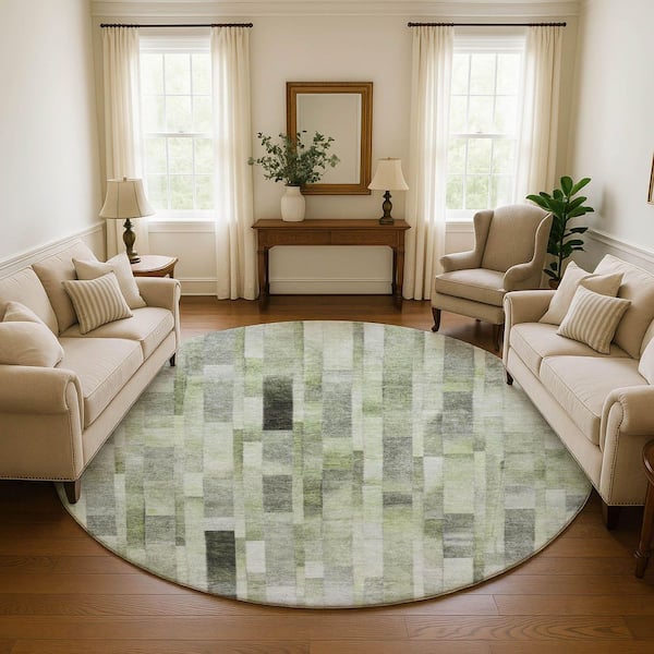 Mayfield Premium Machine Washable Abstract AMF1630 Green 8 ft. x 8 ft. Round Rug