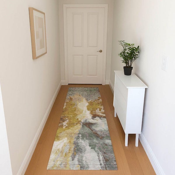 Mayfield Premium Machine Washable Abstract AMF1632 Gold 2 ft. 3 in. x 7 ft. 6 in. Runner Rug
