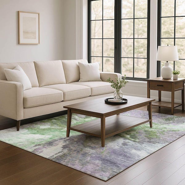Mayfield Premium Machine Washable Abstract AMF1632 Green 5 ft. x 7 ft. 6 in. Area Rug