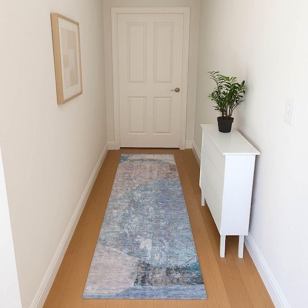 Mayfield Premium Machine Washable Abstract AMF1635 Blue 2 ft. 3 in. x 7 ft. 6 in. Runner Rug