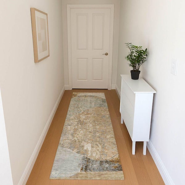 Mayfield Premium Machine Washable Abstract AMF1635 Gray 2 ft. 3 in. x 7 ft. 6 in. Runner Rug