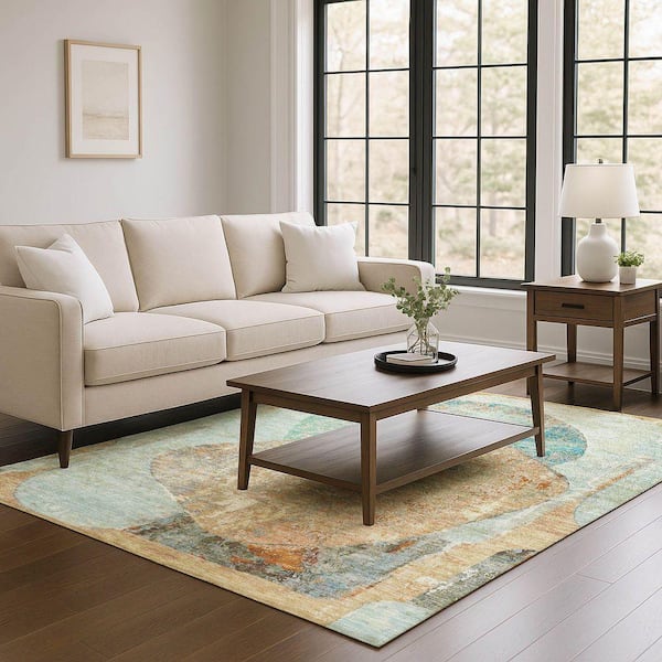 Mayfield Premium Machine Washable Abstract AMF1635 Teal 8 ft. x 10 ft. Area Rug