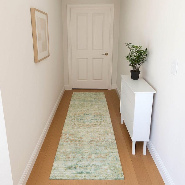 Mayfield Premium Machine Washable Abstract AMF1636 Sage 2 ft. 3 in. x 7 ft. 6 in. Runner Rug