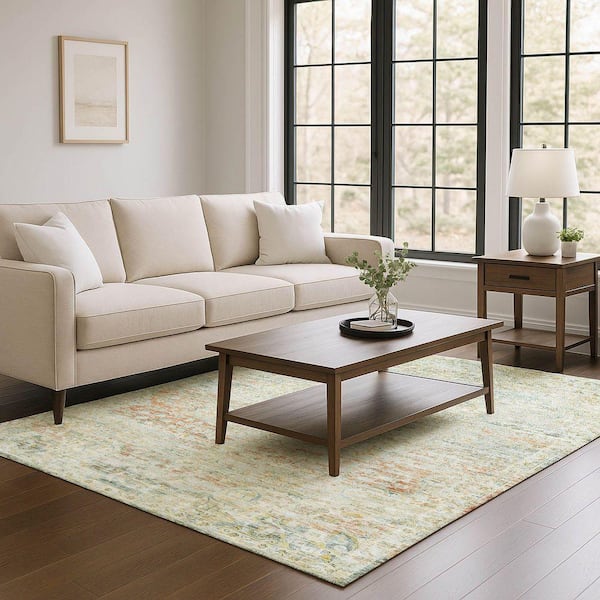 Mayfield Premium Machine Washable Abstract AMF1636 Tan 8 ft. x 10 ft. Area Rug
