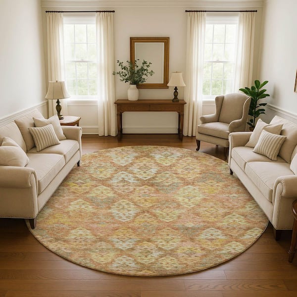 Mayfield Premium Machine Washable Abstract AMF1637 Copper 8 ft. x 8 ft. Round Rug