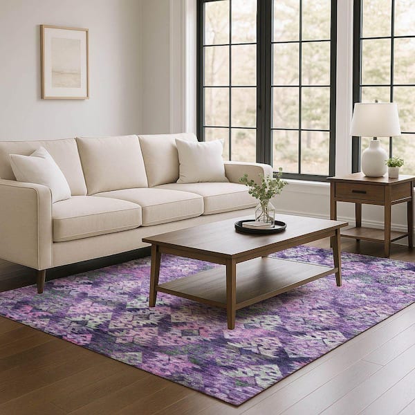 Mayfield Premium Machine Washable Abstract AMF1637 Eggplant 9 ft. x 12 ft. Area Rug
