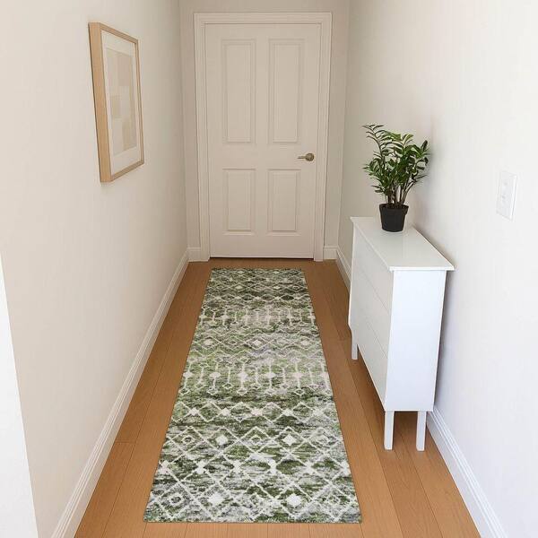 Mayfield Premium Machine Washable Abstract AMF1638 Olive 2 ft. 3 in. x 7 ft. 6 in. Runner Rug