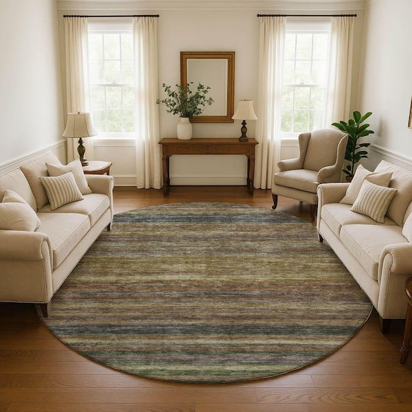 Mayfield Premium Machine Washable Abstract AMF1639 Brown 8 ft. x 8 ft. Round Rug