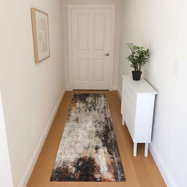 Mayfield Premium Machine Washable Abstract AMF1640 Gray 2 ft. 3 in. x 7 ft. 6 in. Runner Rug