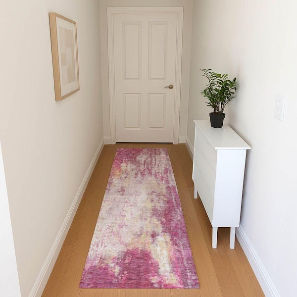 Mayfield Premium Machine Washable Abstract AMF1640 Pink 2 ft. 3 in. x 7 ft. 6 in. Runner Rug