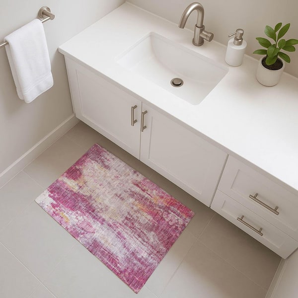 Mayfield Premium Machine Washable Abstract AMF1640 Pink 2 ft. x 3 ft. Area Rug