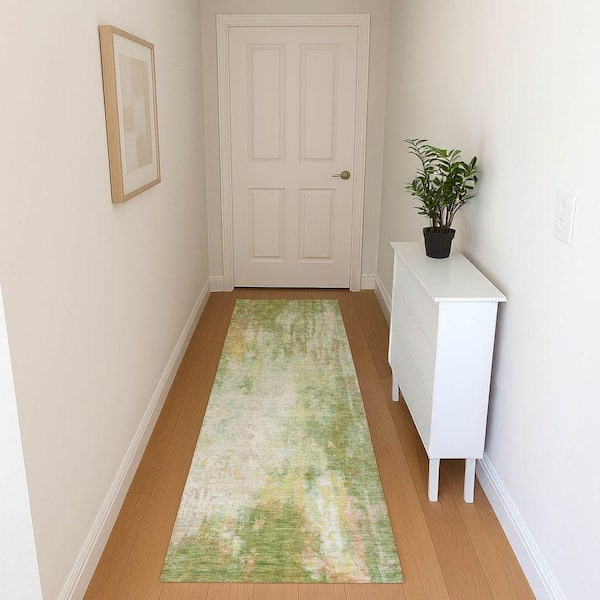 Mayfield Premium Machine Washable Abstract AMF1640 Sage 2 ft. 3 in. x 7 ft. 6 in. Runner Rug