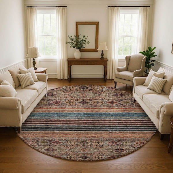 Mayfield Premium Machine Washable Abstract AMF1641 Taupe 8 ft. x 8 ft. Round Rug