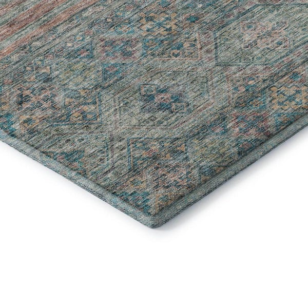 Mayfield Premium Machine Washable Abstract AMF1641 Teal 8 ft. x 10 ft. Area Rug